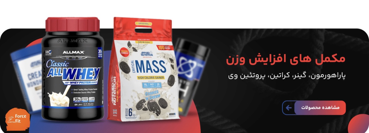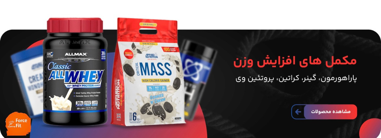 گینر: این مکمل ترکیبی از پروتئین و کربوهیدرات است که برای افزایش وزن و حجم عضلات در افراد با متابولیسم بالا طراحی شده است.