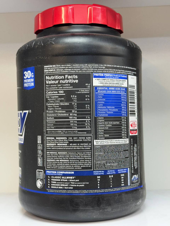 منبع پروتئین آل وی از آب پنیر ، سویا و گوشت گاو می باشد و صد در صد از پروتئین خالص تشکیل شده و به همین علت بین ورزشکاران حرفه ایی و افرادی که سخت تمرین می کنند از محبوبیت بالایی برخوردار می باشد.
