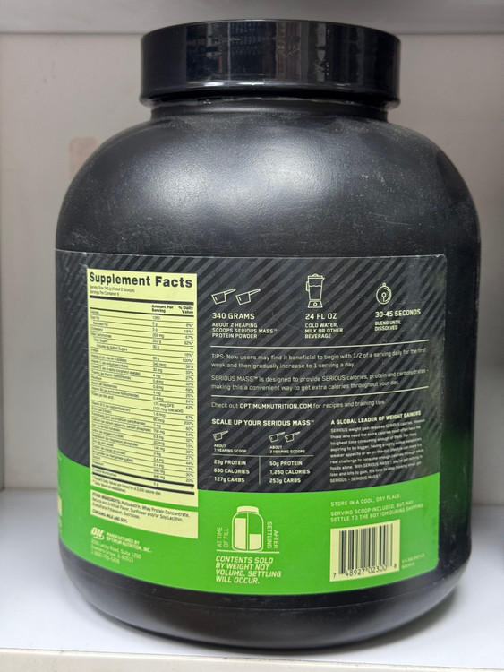 دو پیمانه Serious Mass (334 گرم) را با 710 میلی لیتر آب مخلوط کنید تا یک شیک خوشمزه و پر از کالری داشته باشید. یا یک پیمانه را به یک کاسه ماست یا اسموتی میوه تازه اضافه کنید تا کالری دریافتی خود را در طول روز افزایش دهید.