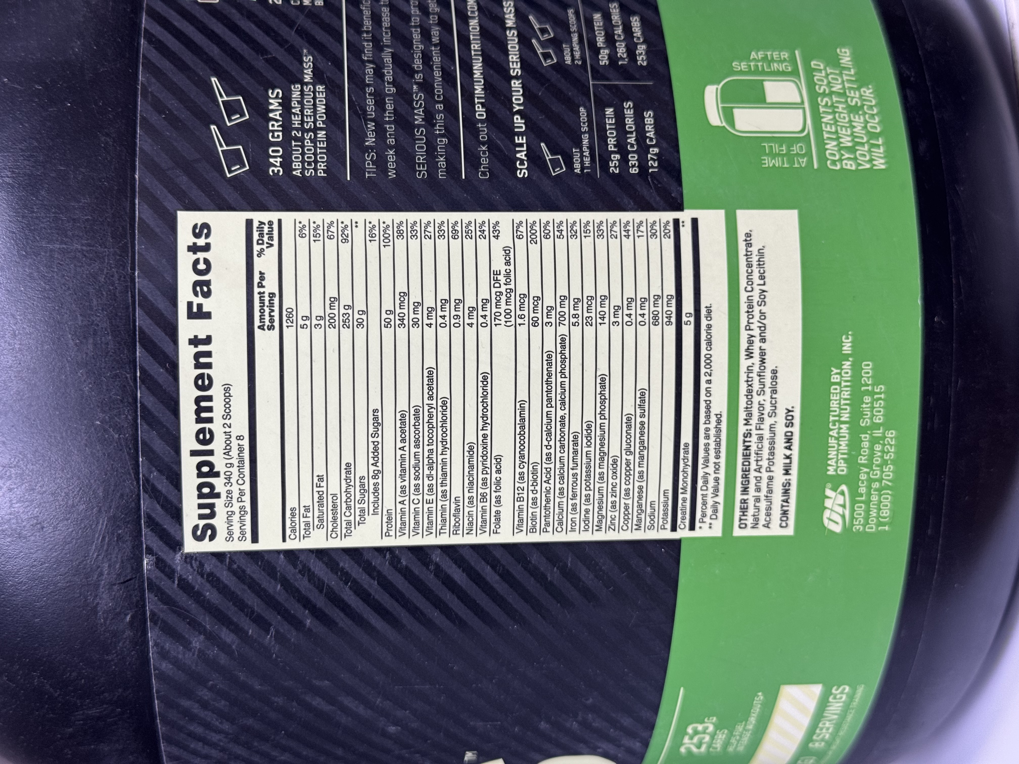 گینر سریوس مس اوپتیموم Optimum Serious Mass وزن 2.72 کیلوگرمی یک مکمل افزایش دهنده وزن با کیفیت بالا است که مخصوص ورزشکاران طراحی شده است. اگر می خواهید اندازه و وزن عضلات خود را افزایش دهید Optimum Serious Mass همان چیزی است که نیاز دارید. یکی از شناخته شده ترین پودرهای افزایش وزن موجود است که در هر وعده خود 53 گرم پروتئین را برای حمایت از رشد عضلات ارائه می دهد.
