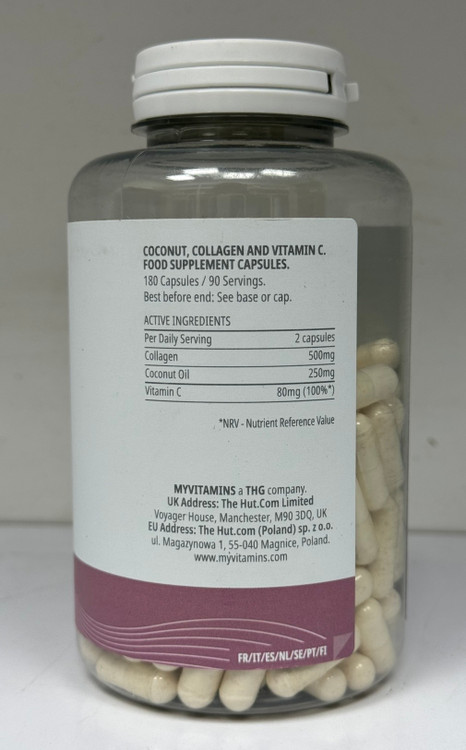 ویتامین C یکی دیگر از ترکیبات کوکونات کلاژن مای ویتامینز است. ویتامین سی یک آنتیاکسیدان قوی است که در تولید طبیعی کلاژن در بدن نقش دارد. این ویتامین به جذب بهتر کلاژن موجود در کپسول کمک کرده و علاوه بر آن، با مقابله با رادیکالهای آزاد، از پوست در برابر آسیبهای محیطی محافظت میکند. همچنین ویتامین C باعث روشنتر شدن و بهبود بافت پوست میشود.