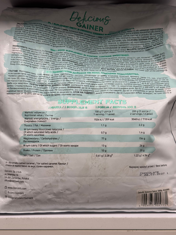 گینر استروویت کیسه ای یک مکمل کربو پروتئین(کربوهیدرات و پروتئین) فوق العاده است که به طور خاص برای افرادی که به دنبال افزایش حجم عضلات خود هستند طراحی شده است. این محصول با مقدار قابل توجهی کربوهیدرات (76٪) بسته بندی شده است که به عنوان یک منبع انرژی اساسی عمل می کند. آیا درگیر ورزش هستید و مشتاق به افزایش بی دردسر وزن خود هستید؟ یا شاید شما برای رسیدن به اندام مورد نظر خود با چالش هایی روبرو می شوید؟ مکمل غذایی OstroVit Delicious Gainerراه حلی عالی برای رفع نیازهای شماست.